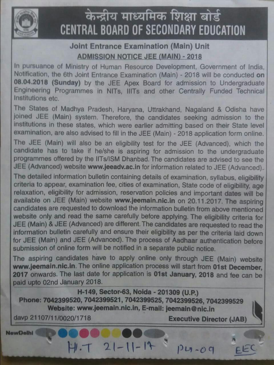 Joint Entrance Exam (JEE) Main is a national level undergraduate engineering entrance exam. ..more